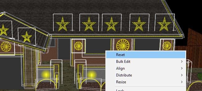 On the right, is the display with all the models you have. As an example, in the above image, the white lines at the edges of my roof are models of strands of lights. if you highlight them, they turn bright yellow so you can see which thing is selected.