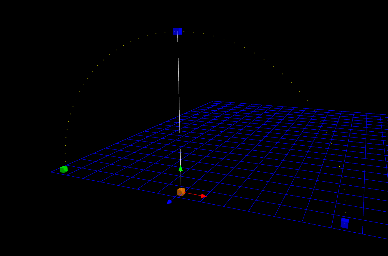 First, there’s the different colored cubes. The orange one is the main anchor point and is roughly in the center of the model. The green one and the blue one opposite are the start and end of the line, respectively; you mainly use these when connecting the models to controllers to tell them where the first and last pixels in the model are so it doesn’t get rendered backwards.